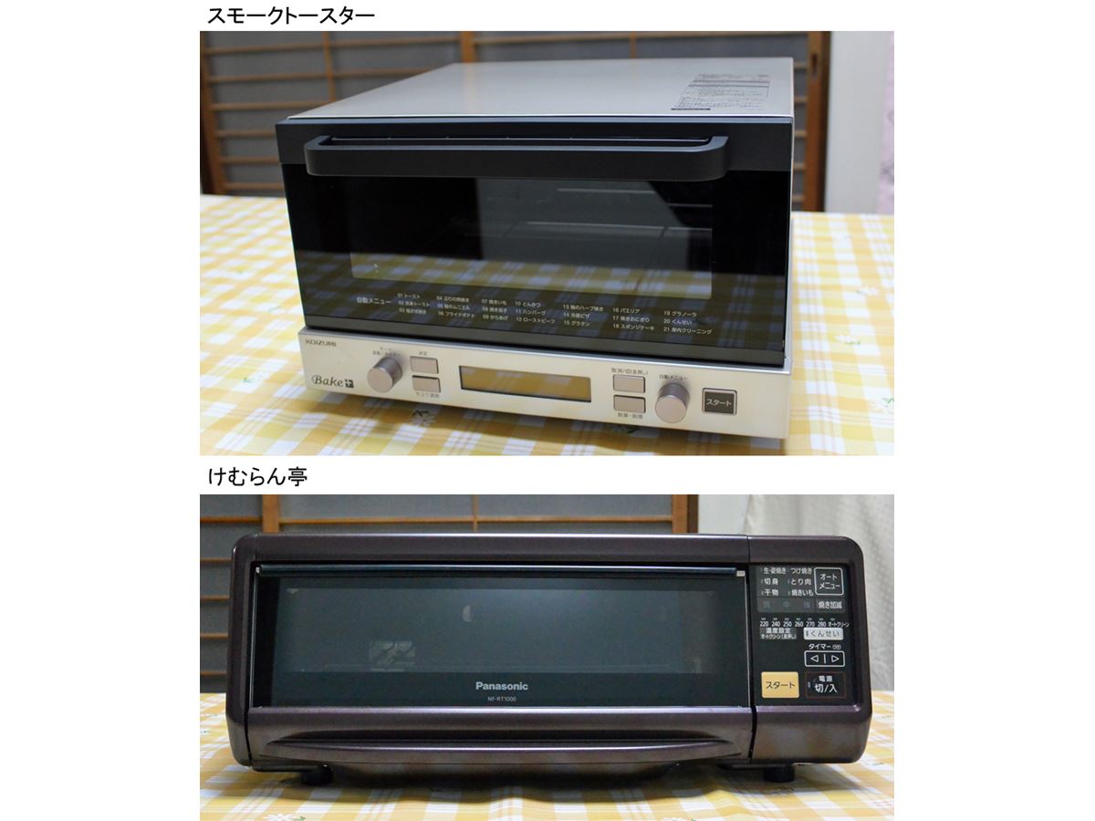 2015年に発売されるやいなや大ヒットとなった、部屋の中で燻製作りができるパナソニック「けむらん亭」。発売から1年半以上経つ現在でも、価格.comのフィッシュロースター 人気売れ筋ランキング1位に君臨しているほどの人気です(2017年4月7日時点)。実際に使ったことがありますが、手軽さも仕上がりも上々でした。ただ、けむらん亭はフィッシュロースターを進化させたものなので、本体幅が広め。そこで目をつけたのが、燻製も作れて本体幅が小さい、コイズミ「スモークトースター KCG-1201」(以下、スモークトースター)。両機の差をチェックするとともに、スモークトースターの実力を調査してみました。