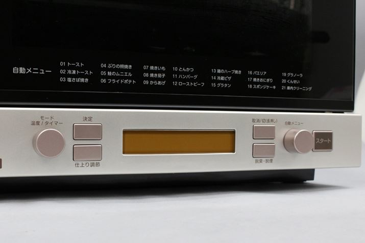 手動で調理モードや時間を選択、設定する際は、左側のダイヤルと「決定」ボタンを利用します。鮭の切り身は、コンベクション調理で250℃、16分の加熱時間でスタート