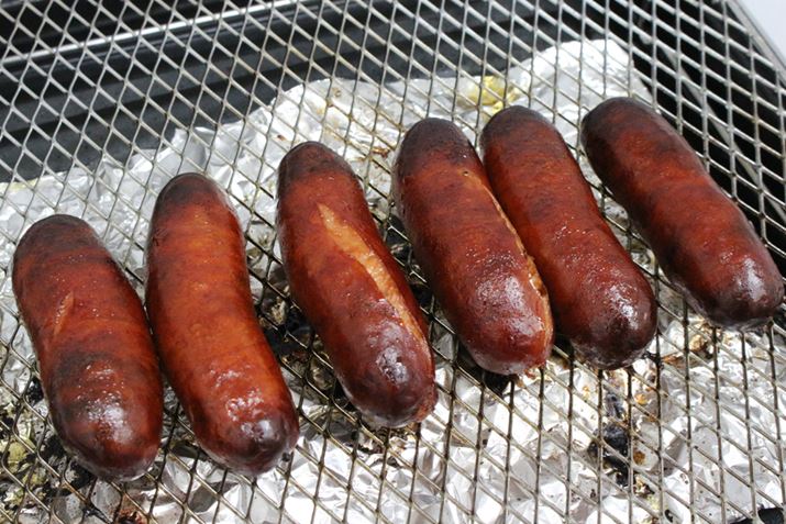 鶏もも肉の燻製を作る「3-20」で調理してみたところ(加熱時間約29分)、少々長かったようで焦げてしまいました。生肉ではないので、ウインナーは「2-20」(加熱時間約20分)でいいかもしれません。でも、これでも焦げた苦さはなく、スモークの香りを楽しめました