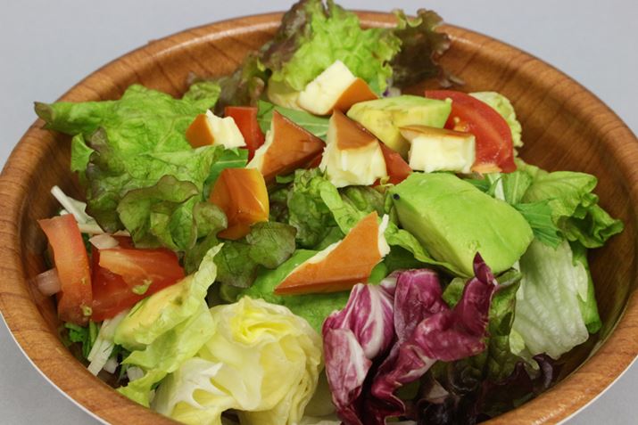 買ってきたサラダにスモークしたチーズを乗せれば、風味がアップ! 燻製は作った翌日でもおいしく食べられるので、家で作って次の日の朝食や昼食に利用することもできます