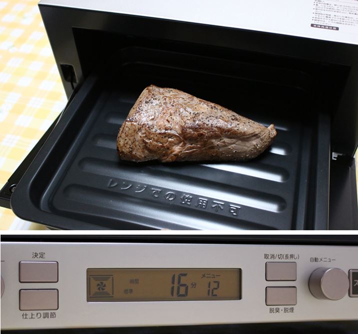 火加減や時間を誤ると、肉に火が通りすぎてじょうずに仕上がらないローストビーフも、自動メニューを利用すればラクラク。事前にフライパンで牛肉の表面を軽く焼いておく手間はありますが、そのあとはスモークトースターにおまかせできるので初めてでも失敗しないはず! なお、ローストビーフはコンベクション調理で行うようです。