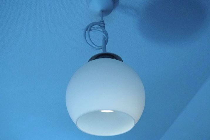 部屋のペンダントライトにHue ホワイトグラデーション シングルランプを装着。本来、ペンダントライトには調光機能はありませんが、電球にHueを使うことで昼は照明、夜は常夜灯として利用できるようになりました
