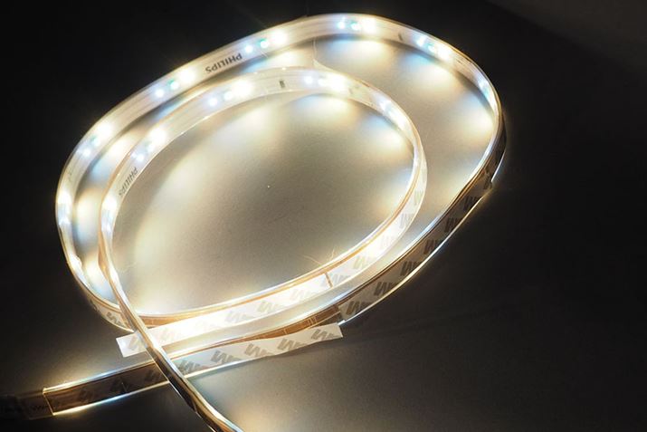 間接照明として便利な「Hue ライトリボン プラス」。壁や家具に貼り付けて使用します