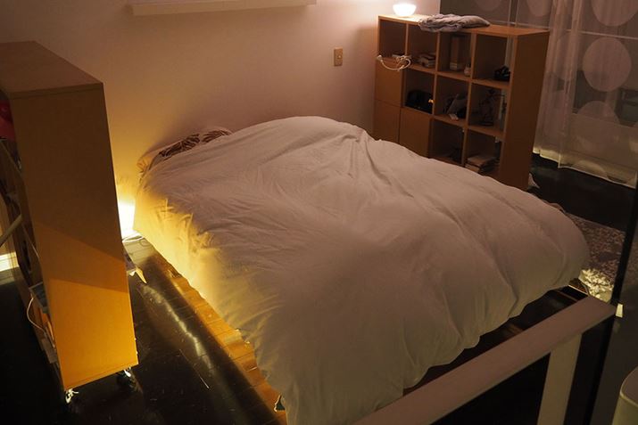 ベッドの下に間接照明があると、まるで高級ホテルのよう。足下しか照らさないので寝ているときは明るく感じず、起きる時はきちんと足下を照らしてくれます