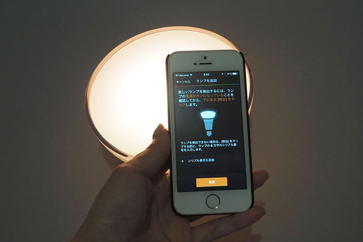 照明を点灯した状態で、アプリを立ち上げて「検索」するだけで照明の追加ができます