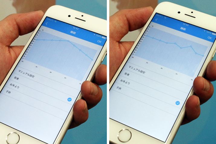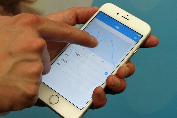 睡眠モードにあるマニュアル設定では、ドラッグで1時間ごとの温度を変更可能。就寝○時間までは低め、その後は高めにして、明け方に低めの温度にしたいといった設定もできます