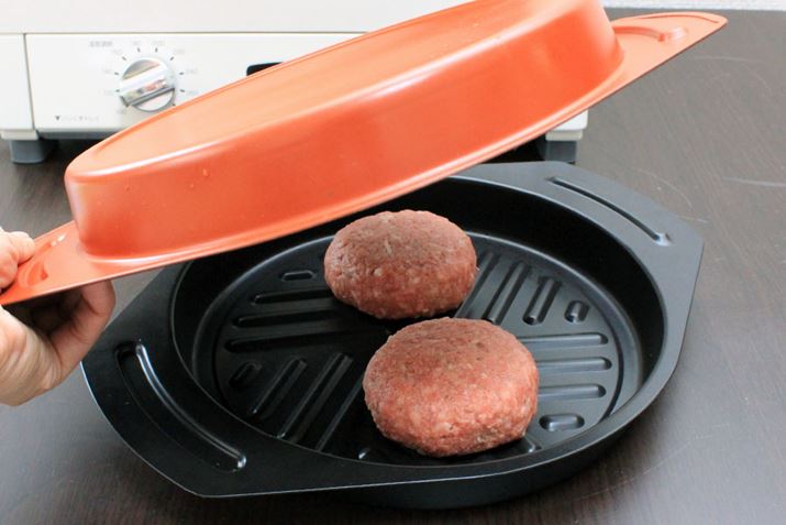 波型グリルパンにハンバーグを乗せてフタを閉め、260℃設定で12〜13分ほど加熱してみました