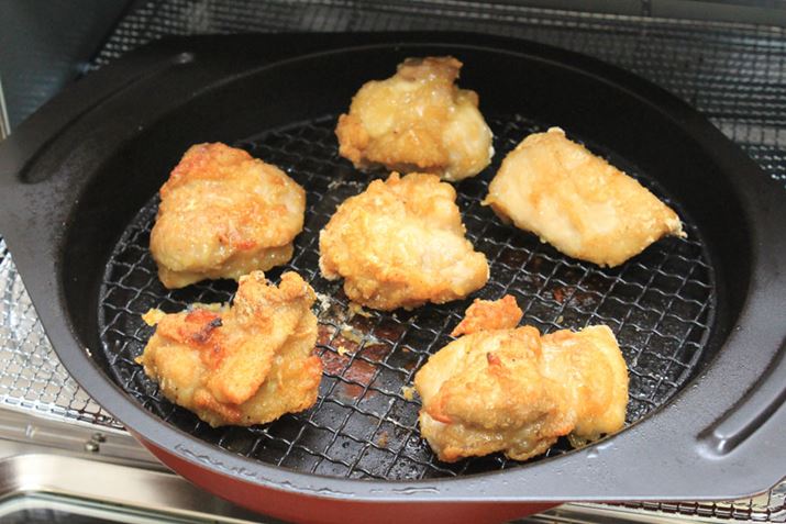 さらに、から揚げをノンフライ調理することも! グリルパンのおかげでノンフライオーブンとしても使えるのです