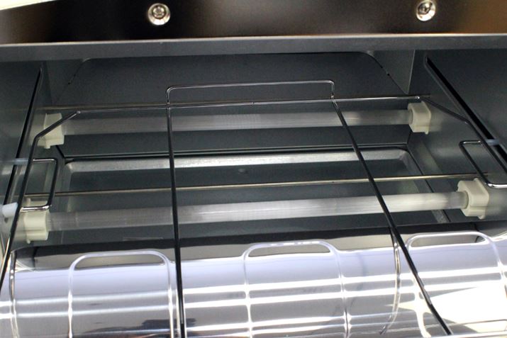 上部に備えるグラファイトヒーターは下位モデルと同じく1本ですが、庫内が広いので下部の石英管ヒーターは2本備えています(下位モデルは1本)