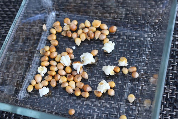 ちなみに、ほかのコーンが弾けた勢いで弾け損ねたコーンが飛び出してしまうことも。何回かチャレンジしたのですが、毎回このくらいの量が残ってしまうようでした
