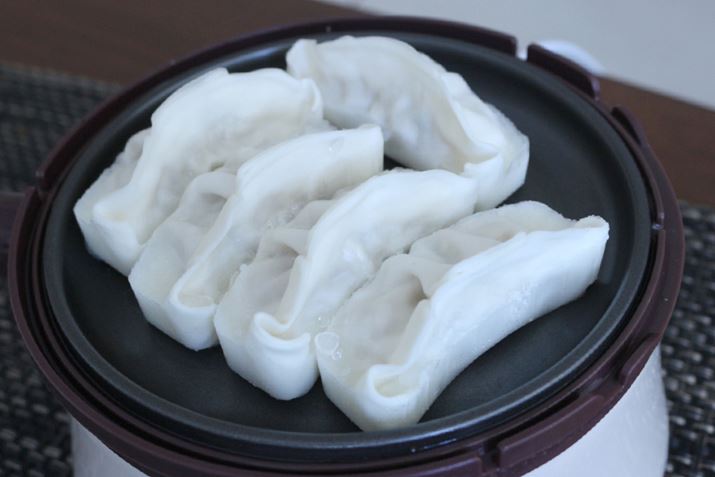 3分ほど加熱したところ、奥の餃子はすでにいい焼き色を通り越して焦げかけているのに、手前に並べたものはまだ焼きが甘いようでした。タイミングを見て場所を入れ替えるなど、使い方に工夫が必要のようです