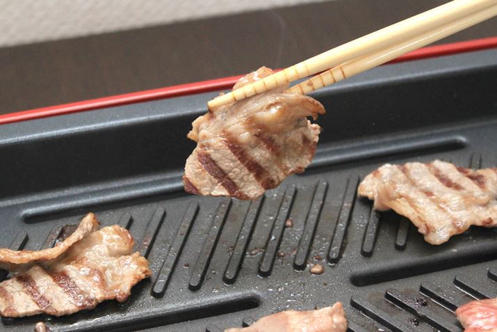 また、プレート部を外して丸洗いできるのはもちろん、各プレートは表面がノンスティック加工されているので、食材のこびり付きが少なく、お手入れが簡単なのもポイントです。プレートの清潔感をキープして、おいしいお肉を焼くことができます。ひとつ注意点があるとすると、水トレイの水がなくなっていることに気付きにくいので、こまめにチェックしたほうがイイかも。