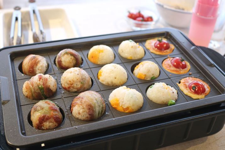 そしてつい先日、さらに「たこやきプレート」も追加で登場しました。スタンダードにたこ焼きを作ることはもちろん、ミニサイズのおにぎりやオムライスなどを焼くこともできます。これで、デフォルトで付属するものとオプションで用意されているものをあわせ、ホームバーベキューで使えるプレートは5種類に! 食卓でさまざまな調理を楽しめますね。