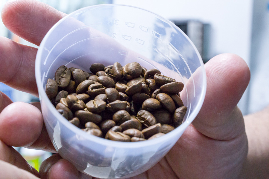 筆者がいつも近所のスーパーで購入している豆。焙煎が強めで、表面がコーヒーオイルでてらてら輝いている