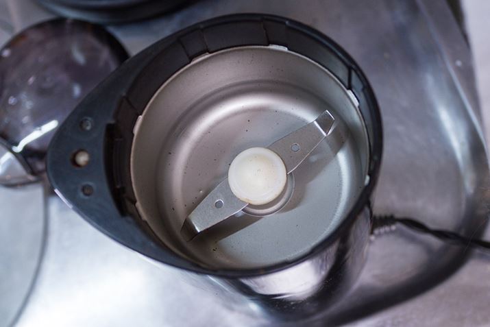 筆者が普段使っているプロペラ式の電動ミル。フードプロセッサーのように高速回転刃で粉砕する方式で、手入れは楽だが、雑味の原因となる挽きムラや、風味の劣化を招く摩擦熱が発生しやすいという難点がある