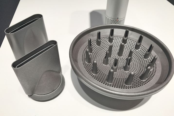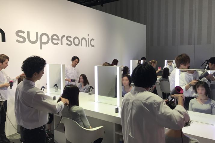 一般的なドライヤーと比べて音がうるさくないのも特徴。発表会当日はタッチ&トライスペースで10台以上の「Dyson Supersonic ヘアドライヤー」が稼動していたが、会話にも支障がなかった