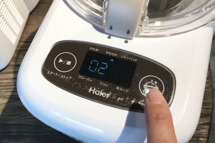 いっぽう、上位モデル「JL-ICM720A」には、「01:かため」「02:やわらか」「03:シャーベット」「04:フローズン」「05:ジュレ」「06:冷スープ」という6段階の仕上がり調節機能を搭載。冷製スープやジュレといったメニューも、アイスクリーム同様簡単に作ることができるという。スイーツだけでなく食事メニューにも使用できるとなると、実用度がぐっと高まる。