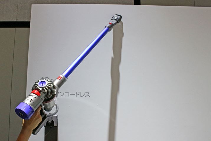 バッテリー容量が「V8」よりも小さく、連続運転時間も10分短い「V7」ですが、重量は「V8」よりも0.2kgほど軽い2.4kg(標準クリーナーヘッド、パイプ含む)。高い所を掃除するには、「V7」のほうがラクそうです
