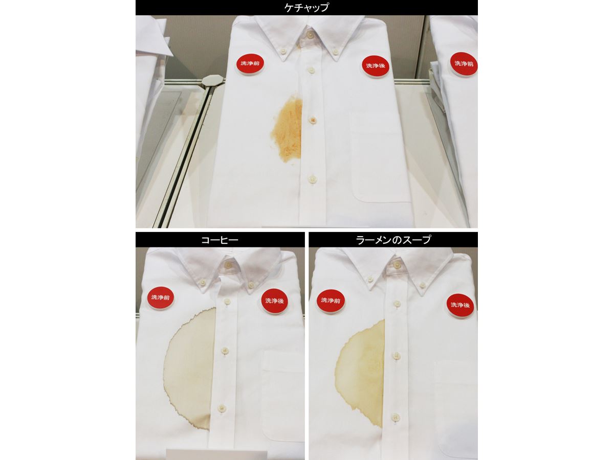 また、ケチャップやコーヒー、ラーメンのスープといったシミになりやすい汚れもウルトラファインバブル洗浄でキレイになります。ケチャップは色素が繊維の奥に入り、念入りに洗っても落ちにくいので、これほどの洗浄力が普通の洗濯コースで望めるなら非常にありがたい!