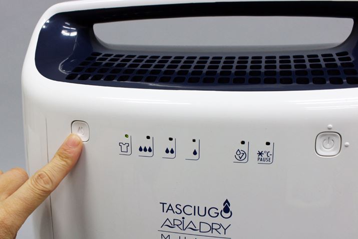 運転モードは衣類乾燥モードと、3段階で設定できる除湿モードが用意されています。除湿モードの強・中・弱は滴のイラストで直感的に操作できるユニバーサルデザインを採用(滴が多くなるほどパワフルに除湿)