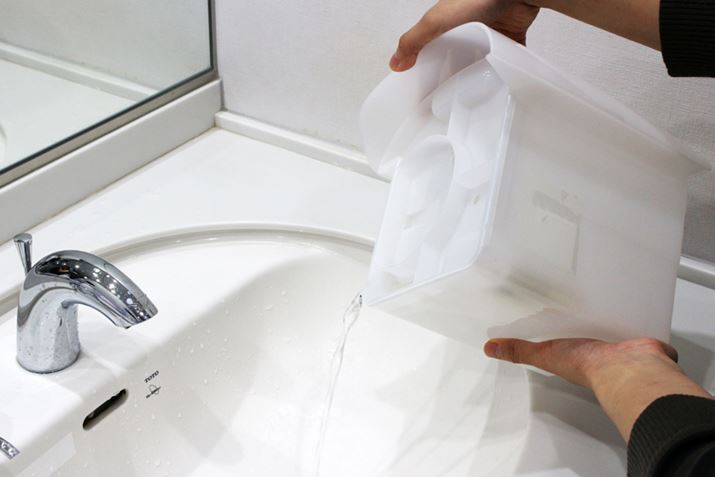 排水タンクにハンドルはありませんが持ち運びは、それほど大変ではありません。フタを開けずに溜まった水が捨てられるようになっている機構も◎