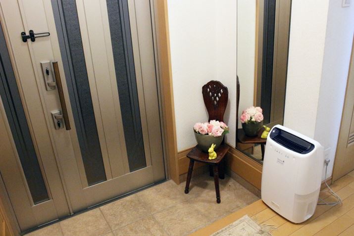 意外と高温多湿になりがちな玄関に、除湿機を置けば帰宅時の快適さが増すかも! デザインがいいから見えるところに置いておいても恥ずかしくありません。いや、むしろ見て!って感じです(笑)