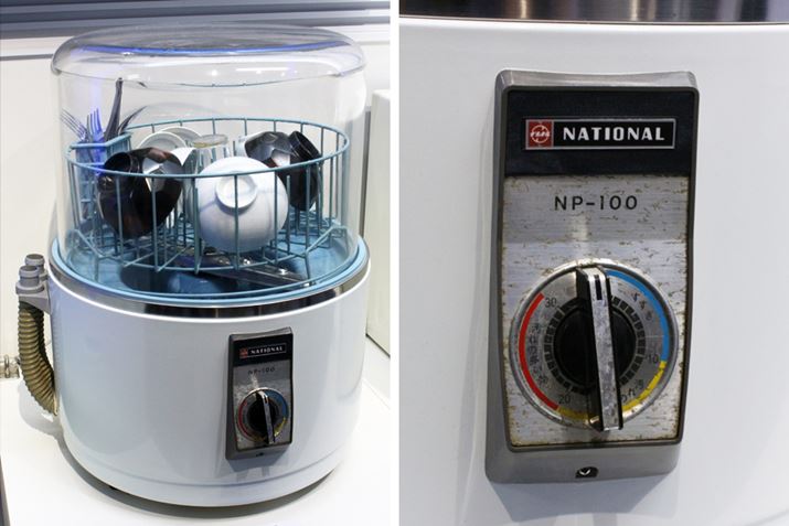 カゴの設計、洗剤の投入方法、温度調整、タイマーといったのちの食器洗い乾燥機の基本構造を作り上げた、床置きタイプ「NP-1000」(1969年発売)