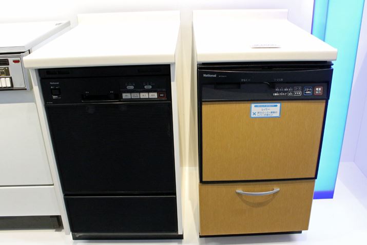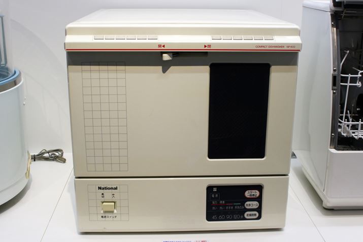 パナソニックの食器洗い機の歴史は古く、第1号機「MR-500」は1960年に誕生しました。これが、日本初の全自動食器洗い機です。ただ、「MR-500」は床に置き、シンクの横に並べて使うスタイルで、その風貌は洗濯機のよう。というのも、同社が製造していた洗濯機のボディを食器洗い機にも利用したのだからカタチが似ているのは当然です。そこから8年後の1968年に卓上型食器洗い機「NP-100」が発売されました。この卓上型食器洗い機も日本初! 瞬間湯沸し器のお湯を利用し、油汚れもよく落とせることがウリでした。その後も、1969年に温度調整機能やタイマーなどを搭載した、現在の食器洗い乾燥機の基本型となるような床置きタイプ「NP-1000」が登場しますが、まだまだ普及は思わしくなく、約30年間はまったく売れない時代が続いたと言います。そんな不遇の時代を変えるきっかけとなったのが、1986年に発売されたコンパクトな卓上型食器洗い機「NP-600」。シンクの天板に置けるサイズ感がヒットし、発売1年で約3万台が売れたそう。女性の社会進出という世情とも相まり、1991年には生産台数50万台を達成しました。