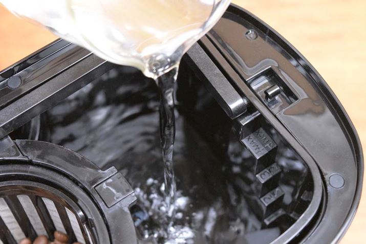 実際に使ってみて、「なるほど!」と感心したのが水の入れやすさだ。水タンクの目盛りはタンク側面に線で記されているのが一般的だが、これだと水を注ぎ入れながらグッとかがんで横からのぞきこまなければならず、場合によっては水をこぼしてしまうこともあった。