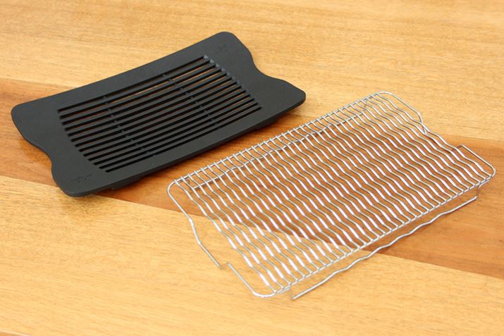 食材を乗せるプレート(ネット)は、「クイックプレート」(左)と「ヘルシーネット」(右)の2種類が用意されています。どちらも、すき間から余分な油が落ちるのでヘルシーさもバッチリ!