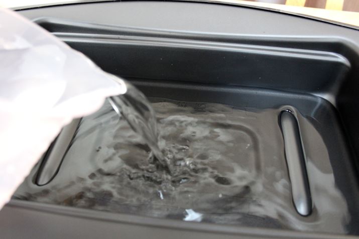 なお、プレートの下には余分な油が落ちるトレイがあります。グラファイトグリラーでの調理は、必ずトレイに水を注いだ状態で行いましょう
