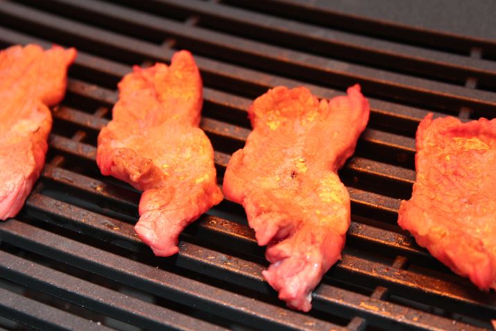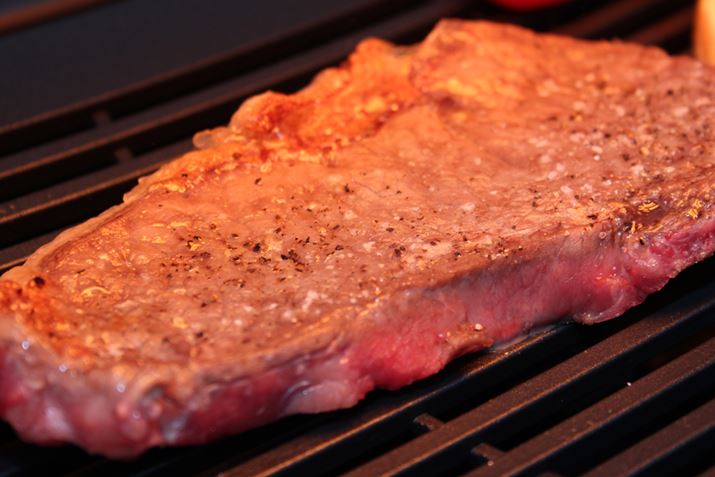 音もなく、ゆっくりと表面から色が変わり始めます。しかし、フライパンで焼いたステーキよりは焼き色は薄め。脂身の部分のみがキツネ色になった感じです