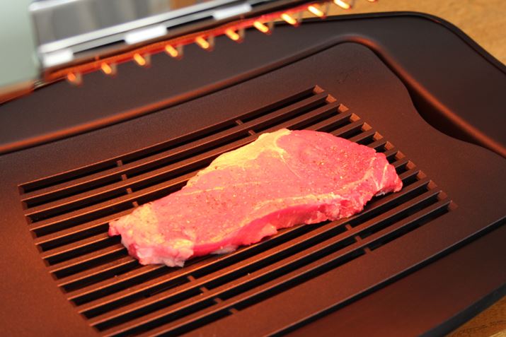 次は、グラファイトグリラーでステーキを調理。焼肉をした時同様、30秒ほど予熱したあと肉を載せて3分焼き、裏返してさらに3分加熱します。