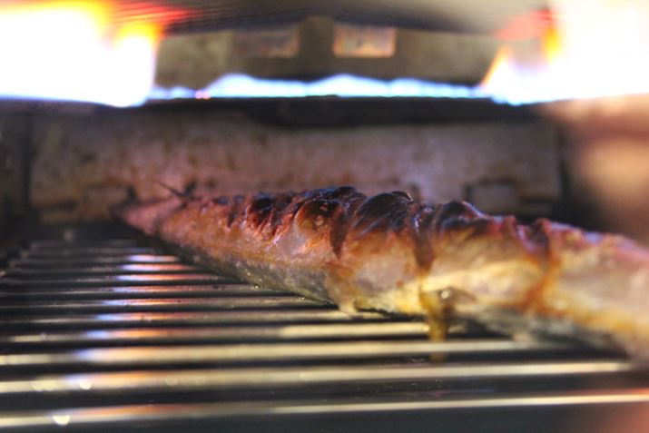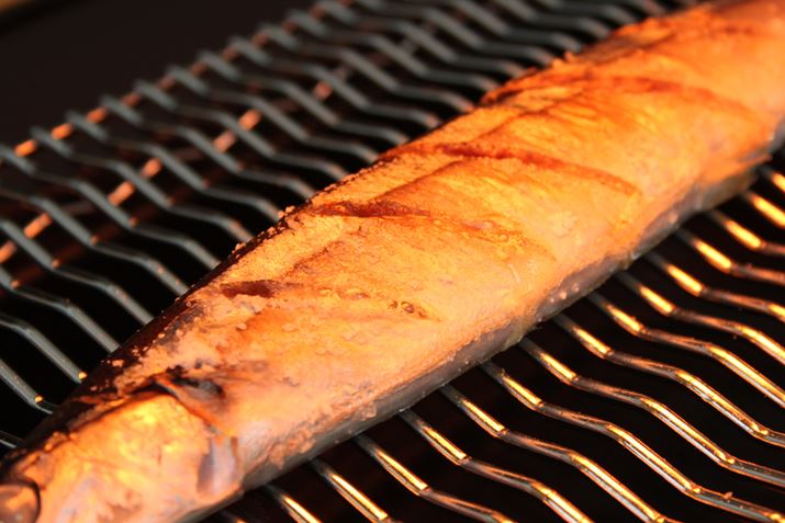 グラファイトグリラーは十分な幅があるので、サンマを2〜3尾一度に焼くことができそうです。なお、グラファイトグリラーも、魚は途中で裏返えさねばなりません