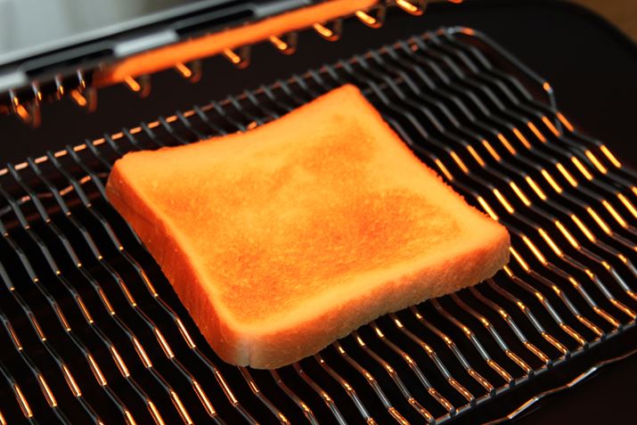 最後に試したのは、トースト。0.2秒で発熱するAladdinの調理家電といえば、やはりトースターが有名ですし、そのトースターと同じ遠赤グラファイトヒーターを搭載しているなら、グラファイトグリラーでもおいしく焼けるのでは? と思ったのです。