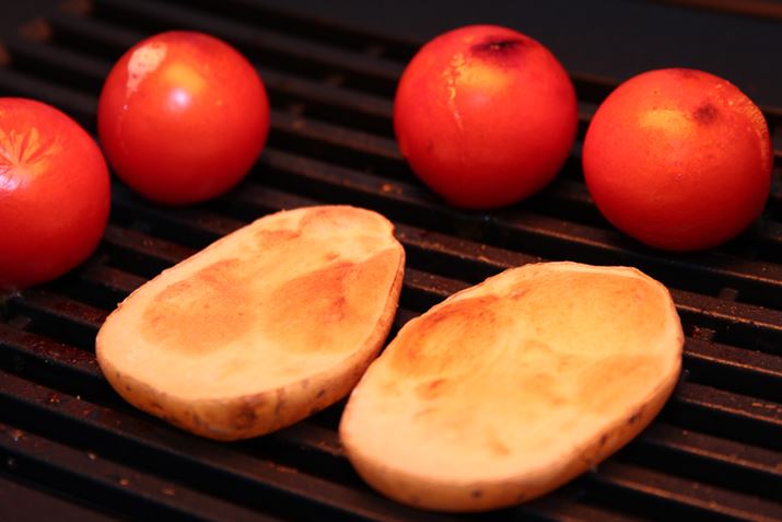 筆者のイチオシは、ポテトとプチトマトのグリル。ポテトは厚切りフレンチフライのようにまわりがカリッ、中がしっとり。プチトマトは甘みが増し、芳醇な香りが口に広がりました