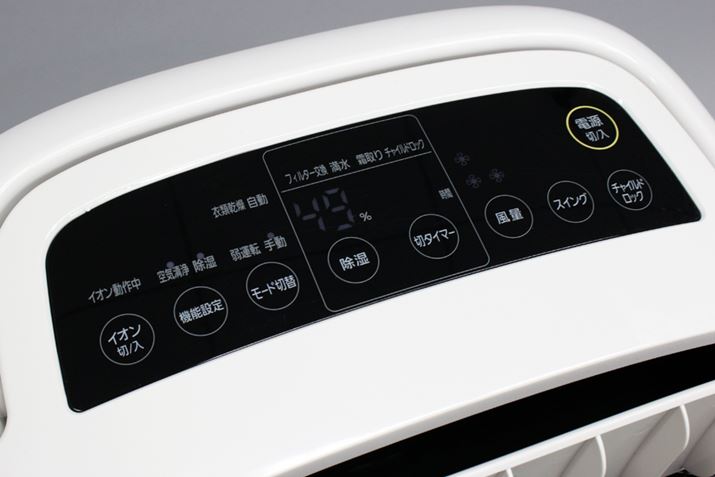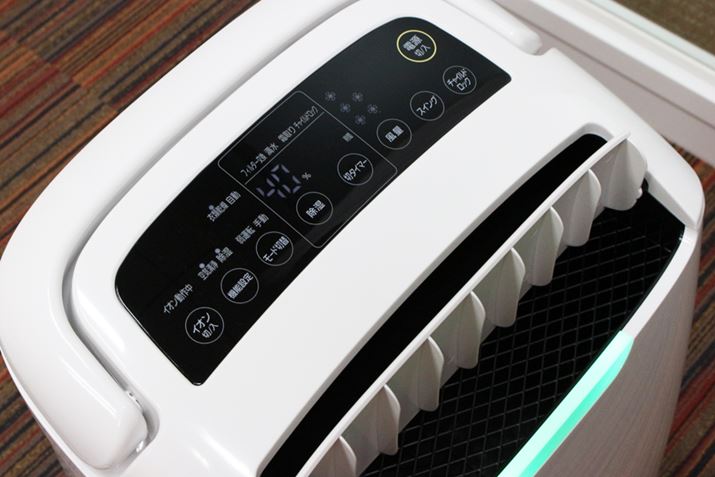 除湿機を稼動させているのに湿度が高くなるのは、なぜ? と、DCE-120の操作部を見ると、「除湿」のランプが消え、空気清浄のみになっていました