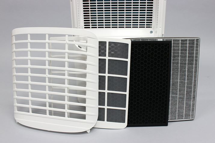 吸気口カバーの裏に装着された「プレフィルター」が大きめの汚れをキャッチし、「HEPAフィルター」が0.3μmの微粒も99.97%以上捕集。そして、プレフィルターとHEPAフィルターの間にある「活性炭フィルター」がニオイを消臭します