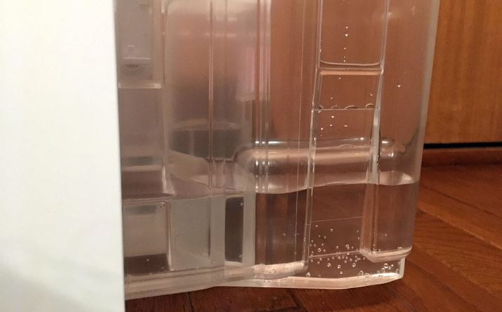 排水タンクには約950mlの水が溜まっていました。まだまだ排水タンクに余裕があるので、1日中稼動しても満水で運転が止まることはなさそうですね