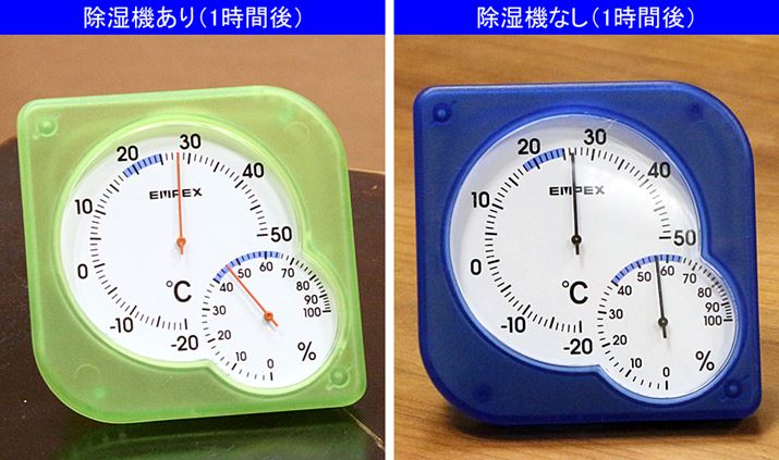 DCE-120は壁に近いところに設置し、部屋の中央に置いた湿度計で変化をチェックしました