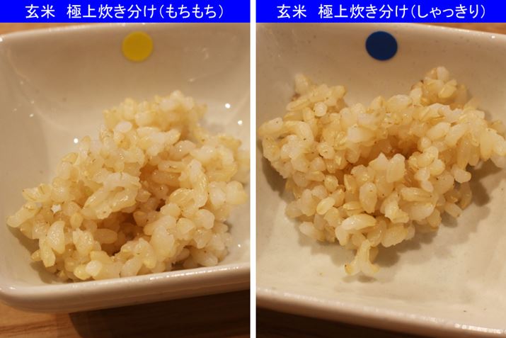 浸し時間や温度、蒸らし時間を変えることで食感を「しゃっきり」「ふつう」「もちもち」に炊き分けできる「極上炊き分け」で炊いた白米を試食しました。