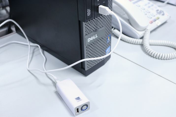 バッテリーの充電はUSB対応のアダプターで行う。パソコンのUSBポートに直接挿して使用することもできるので、デスクワークの休憩にも使える。女性の場合、アイメイクが崩れるので厳しいかもしれないが