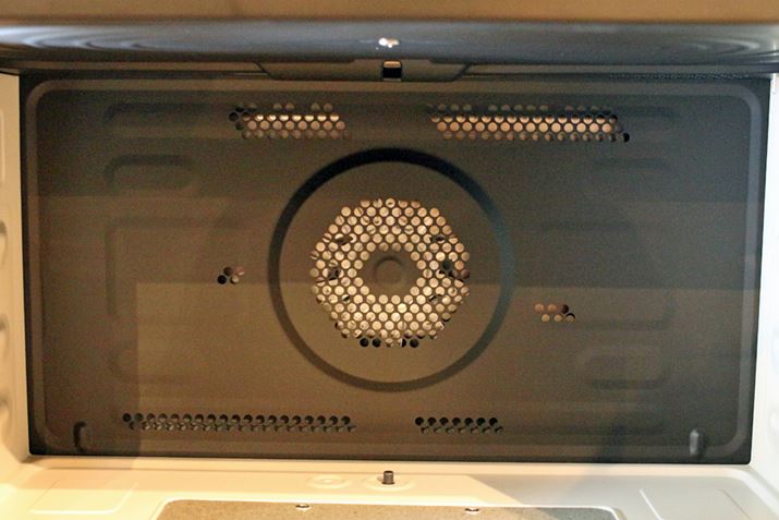 庫内奥にあるファンを予熱時は右回転、調理時は左回転させて熱風を最適な流れで循環させます。ファンに仕掛けがあるのではなく、ファンのまわりに空いている穴の数を左右で変えることで、熱風の流れをコントロールしているのだそう。なお、予熱200℃まで約4分50秒で到達します