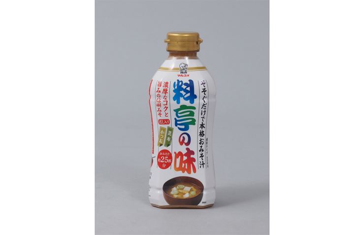 使用できるみそは、椀ショット専用のボトルに入った液みそのみ。今回はスーパーでも手に入りやすい、「液みそ 料亭の味」を使用した(写真は旧タイプ)