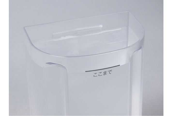 本体うしろ側にある水タンクに水を入れ、本体に再度設置する。タンクには水以外は入れないこと。