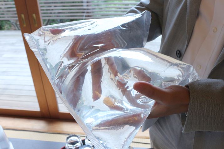 発表会では、「つきじ治作」の調理長が「FRECIOUS dewo mini」を使用して作った和菓子がふるまわれた。水の味を味わえるようにと砂糖控えめで作られた水まんじゅうとフルーツの寒天寄せは、爽やかでみずみずしい味だった