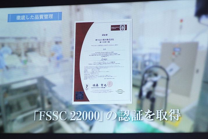 富士山の銘水は、日本国内の宅配水専業メーカーでは初めて、食品安全マネジメントシステムの国際規格である「FSSC22000」の認証を取得しているという