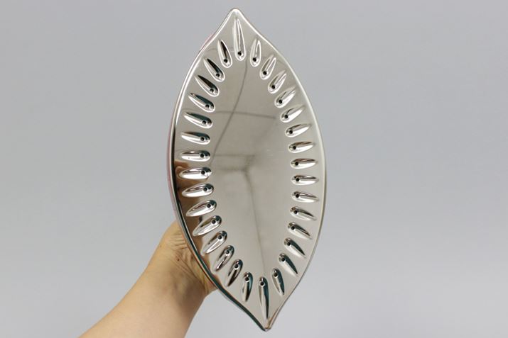 一般的なアイロンのかけ面は三角のカタチをしており、前方にアイロンを動かす際は問題ありませんが、後方に動かす時に生地に引っかかりやすく、アイロンじわがつきやすいという課題がありました。ゆえに、アイロンのかけ方は「前方に強く押して、後方に軽く引く」が常識。さらに、右方向にアイロンがけしたい時はアイロン自体を左手に持ち替えなければなりませんでした。このような手間と効率の悪さをなくすべく、2010年にパナソニックがかけ面の前後両端が細くなった木の葉のような形をした「Wヘッドベース」を開発。実に83年もの間変わることのなかったアイロンの形状に革命を起こしたのです。Wヘッドベースには前後という概念がないので、どちらに動かしてもアイロンじわがつきにくいのが魅力。しかも、前後だけでなく左右、全方向に動かすことができるため、スチームが噴出する穴は全周にぐるりと配置されています。