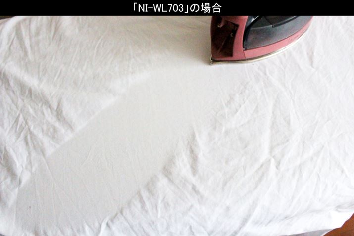 NI-WL703は軽く動かせるため、つい力を込めずにアイロンがけしてしまいます。その結果、少々シワの取れ具合が甘くなってしまったのかもしれません