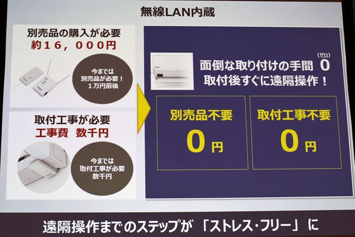 これまでは無線アダプターと無線ゲートウェイを購入(約16,000円)して取り付る必要がありましたが、2018年度モデルは本体だけでスマートフォン操作に対応!